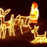 Nun sind sie wieder auf breiter Front auf dem Vormarsch: die Weihnachtmänner samt Säcken und Rentieren – alles in Licht.