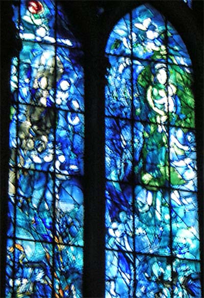 Wer heute in Mainz Touristen trifft, hört zwei Fragen: „Wo ist der Dom?“ und „Wo sind die Chagall-Fenster?“. In vielen Reiseführern zu Mainz stehen diese Fenster ganz oben. Und in der Tat ist es eine Erfahrung ganz eigener Art, eine Kirche zu betreten, die ganz in Chagall-Blau getaucht ist.