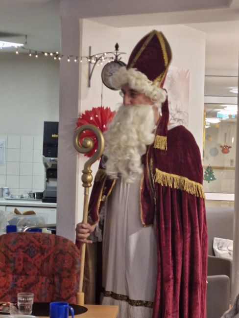 Ein absolutes Highlight ist der Besuch des Nikolauses in den Wohnbereichen. Schon Tage vorher steht die Frage im Raum: „Er kommt doch?“ Ja klar kommt er und findet überall Menschen, deren Augen leuchten, die alte Gedichte aufsagen und gemeinsam das Nikolaus-Lied anstimmen. Große Freude auch bei den Bewohnerinnen und Bewohnern, die in ihren Zimmern besucht werden, da sie das Bett nicht verlassen können.