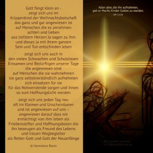 Tags:Advent, Bildimpuls, Gott des Lebens, Gott für uns, Gott Großes zutrauen, Gott-mit-uns, Gottes Heil, Gottes wirkmächtige Gegenwart, Hoffnung, Leben in Fülle, Mt 1.18-24, Vertrauen, Wege des Heils, Zukunft