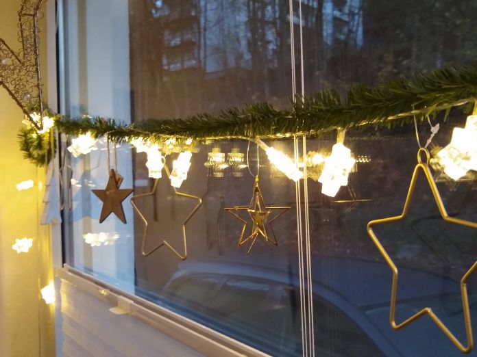 Es ist noch nicht ganz Mitte November. Es ist dunkel, grau und derzeit auch häufig nass, wenn ich morgens zur Arbeit fahre. Gedanklich hänge ich noch bei den Toten- Gedenktagen des November, die  Martinszüge sind unterwegs. Da fällt mein Blick bei der Einfahrt in den Ort auf ein erleuchtetes Fenster: Aber kein Lichtschein aus dem Zimmer erhellt den Rahmen, nein mir leuchtet ein komplett weihnachtlich dekoriertes Fenster entgegen.