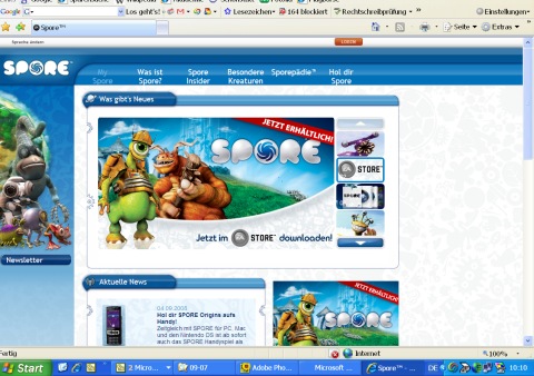 Seit Donnerstag ist es auf dem Markt – das wohl komplexeste Computerspiel aller Zeiten: „Spore“! In der Presse wird es als Einstieg in eine neue Spielegeneration bezeichnet. Wohl nicht zu Unrecht, denn bei dem Spiel handelt es sich um eine Evolutionssimulation. Der Spie-ler hat die Aufgabe mit Kreaturen aus der Ursuppe eine virtuelle Artenvielfalt zu gestalten. Der Anbieter Electronic Arts verspricht gigantischen Evolutions-Spiel-Spaß: